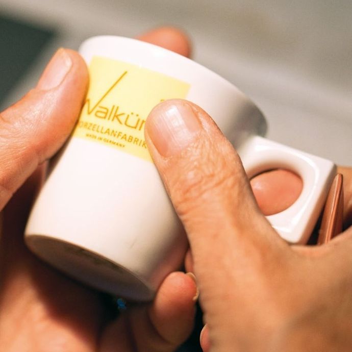 Die Gestaltungsmöglichkeiten sind nahezu unbegrenzt. Ob Teildekoration, Allover-Druck oder klassischer Logodruck – unsere lebensmittelechten Farben setzen Ihre Wünsche perfekt um. Alle Vignetten werden von Hand aufgetragen. Dadurch lassen sich auch anspruchsvolle Motive präzise platzieren, etwa am Henkel, auf der Innenseite oder im Spiegel.