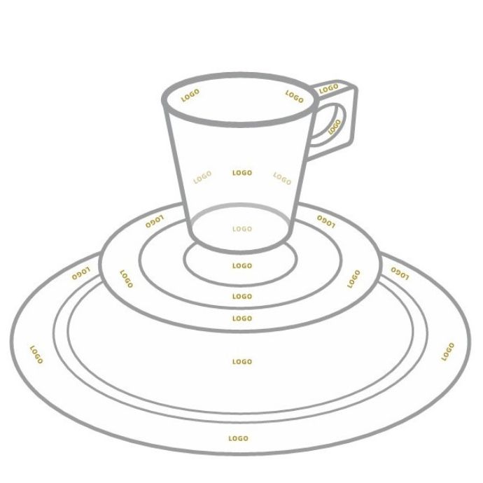 Ihr Logo als Vignette auf einer Tasse oder einem Teller: So stärken Sie die Präsenz Ihres Unternehmens und Ihrer Marke mit einem einzigartigen Auftritt. Ihre Gäste haben Ihr Logo stets im Blick.